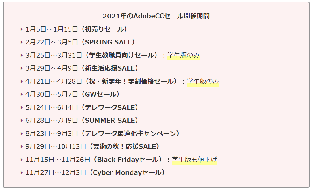 【Adobeのセール過去実績】